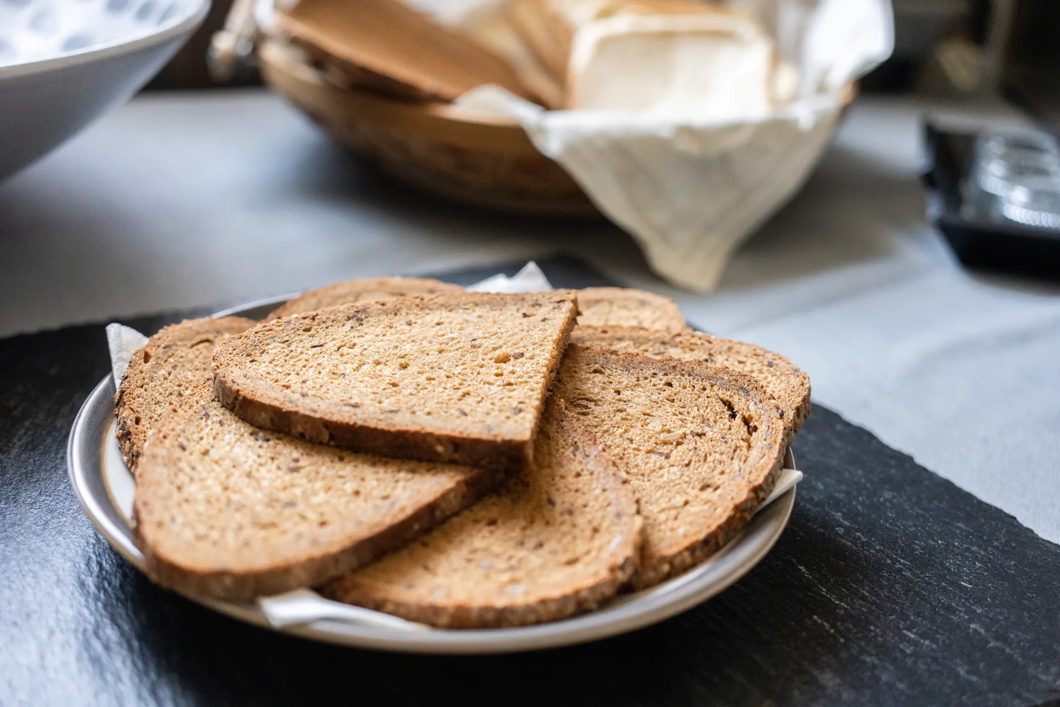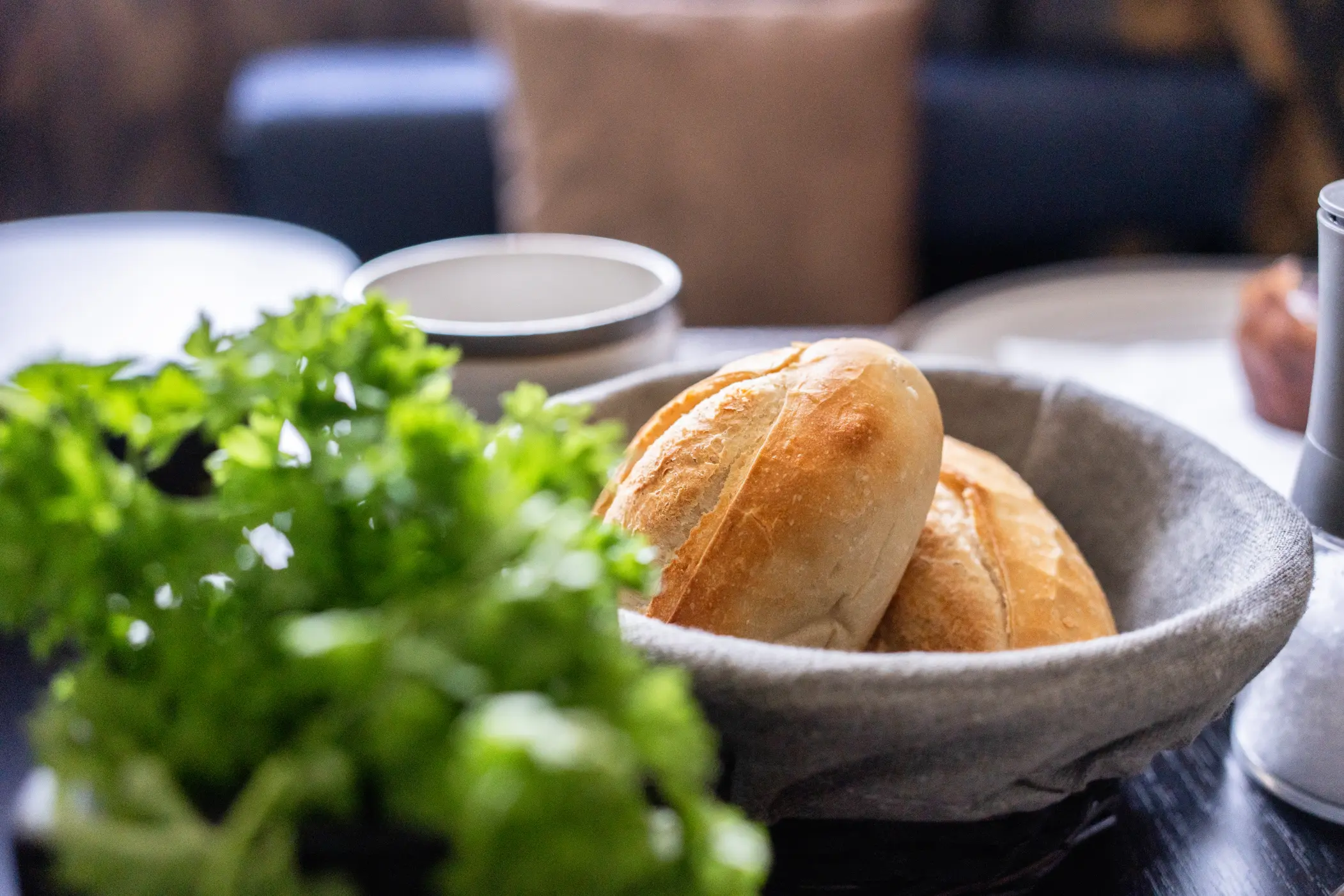 Darüber hinaus liegen stets knusprige Brötchen vom Karbener Meisterbäcker im Körbchen.